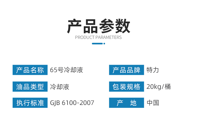 該產(chǎn)品符合國軍標(biāo)GJB6100-2007執(zhí)行標(biāo)準(zhǔn),與長城AF65號冷卻液屬于同一種類型的產(chǎn)品,可以互為替換。除了65號之外,特力還提供冷卻液的標(biāo)號、包裝定制功能:包括40號、45號、50號、60號以及4kg、20kg以及客戶所需包裝服務(wù),歡迎咨詢!