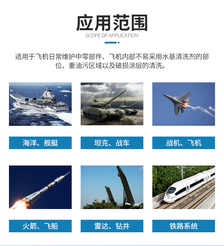 對鋼、銅、鋁、鎂等多種金屬材料有良好緩蝕作用,不會導致鋁合金縫隙腐蝕及高強度鋼發(fā)生氫脆;與金屬及復合材料涂層、有機玻璃、橡膠、密封劑、絕緣導線等非金屬材料適應性良好。