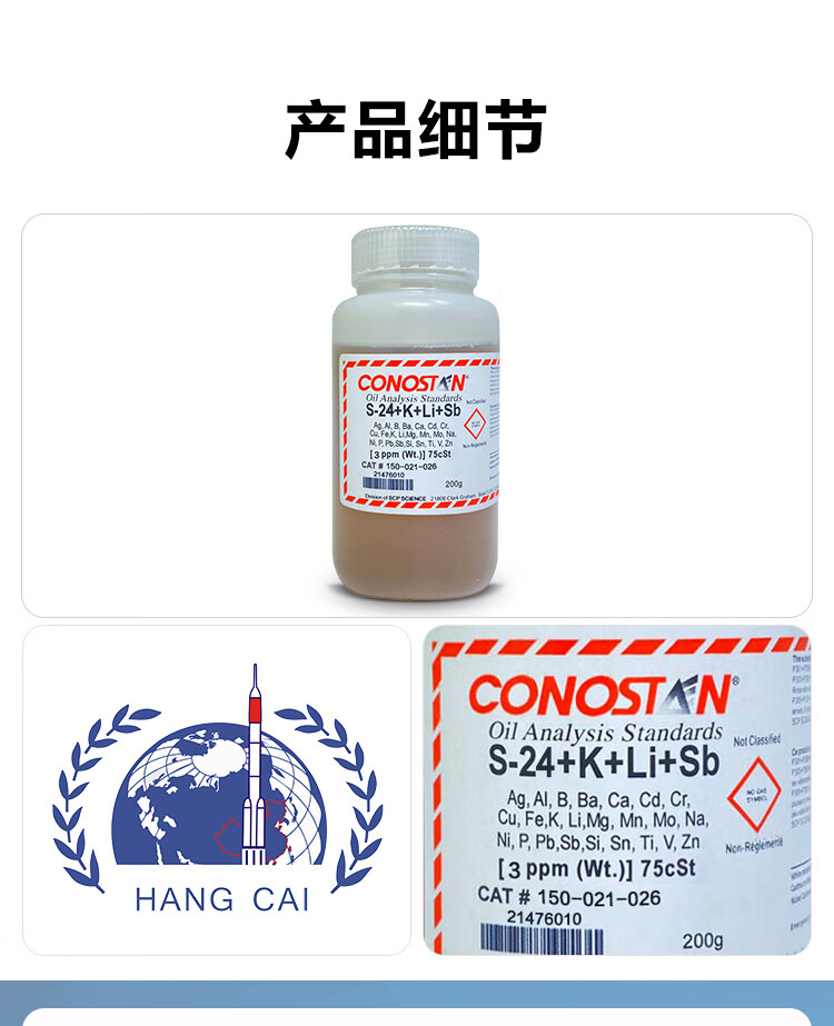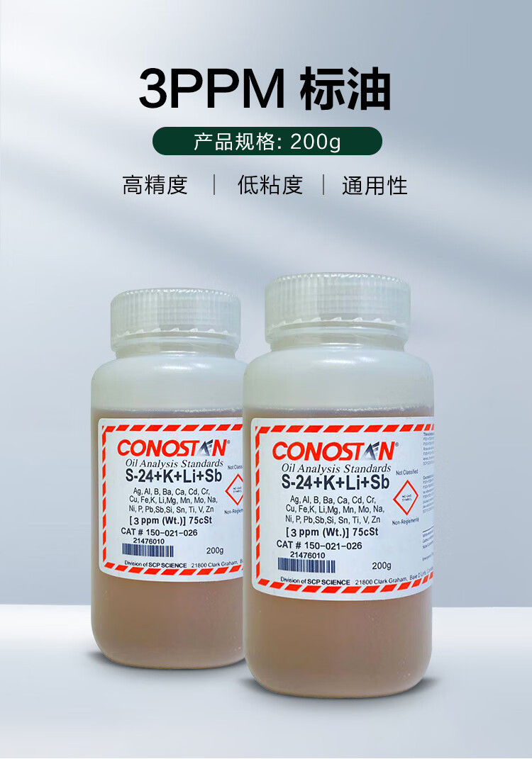 CONOSTAN 3ppm多元素混合標油主要應用于化學檢測儀器,輔助檢測化工品性能。