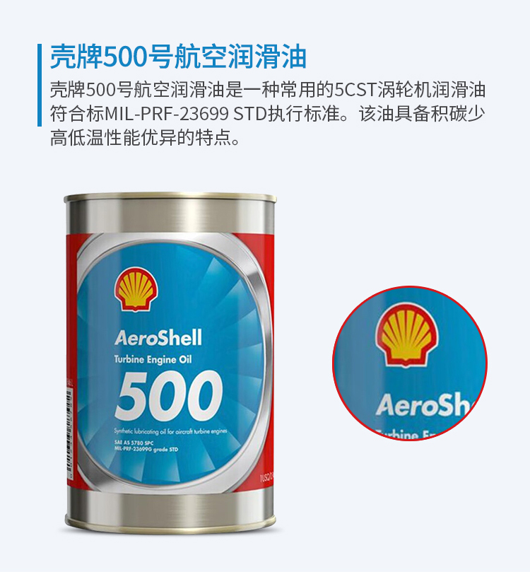 AeroShell Turbine Oil 500是一種常用的5cSt渦輪機(jī)潤(rùn)滑油,符合標(biāo)MIL-PRF-23699 STD執(zhí)行標(biāo)準(zhǔn)。該油具備積碳少、高低溫性能較好的特點(diǎn)。殼牌500航空潤(rùn)滑油在軍、民航空領(lǐng)域均有著廣泛的應(yīng)用。