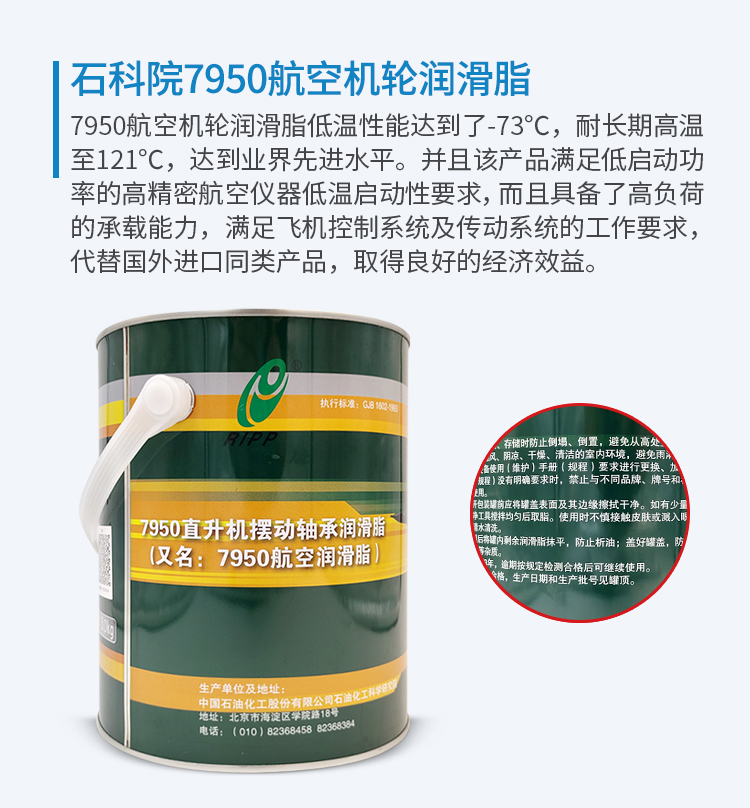 7950航空機(jī)輪潤滑脂是我國軍方及國產(chǎn)飛機(jī)廣泛使用的潤滑產(chǎn)品。取代了80年代以前使用的7008、7008-1及7012航空潤滑脂,其低溫性能達(dá)到了極低溫至-73℃,耐長期高溫至121℃,達(dá)到業(yè)界先進(jìn)水平。并且該產(chǎn)品優(yōu)良的低溫啟動轉(zhuǎn)矩及運(yùn)轉(zhuǎn)轉(zhuǎn)矩,滿足低啟動功率的高精密航空儀器低溫啟動性要求,而且具備了高負(fù)荷的承載能力,滿足飛機(jī)控制系統(tǒng)及傳動系統(tǒng)的工作要求,代替國外進(jìn)口同類產(chǎn)品,取得良好的經(jīng)濟(jì)效益。