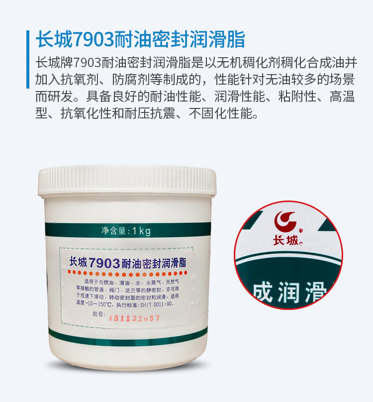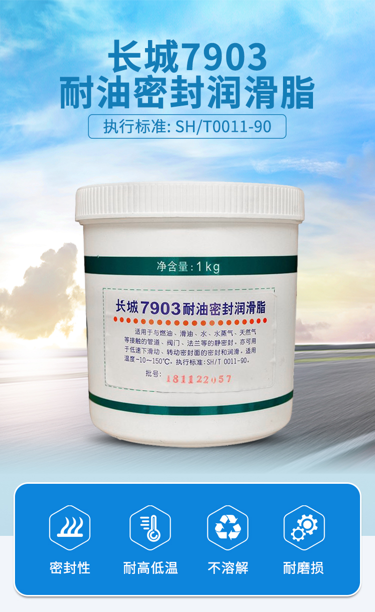 長城牌7903耐油密封潤滑脂是以無機稠化劑稠化合成油并加入抗氧劑、防腐劑等制成的,性能針對無油較多的場景而研發(fā)。具備良好的耐油性能、潤滑性能、粘附性、高溫型、抗氧化性和耐壓抗震、不固化性能。主要用于與汽油、煤油、潤滑油、水、乙二醇和石油液化氣等介質(zhì)接觸的設備和零件的密封和潤滑。該脂已經(jīng)在石油勘探、鍋爐、鋼鐵、汽車、航空等領域大量使用,在抗溶解、分散的實用性方面表現(xiàn)優(yōu)良,性能穩(wěn)定。