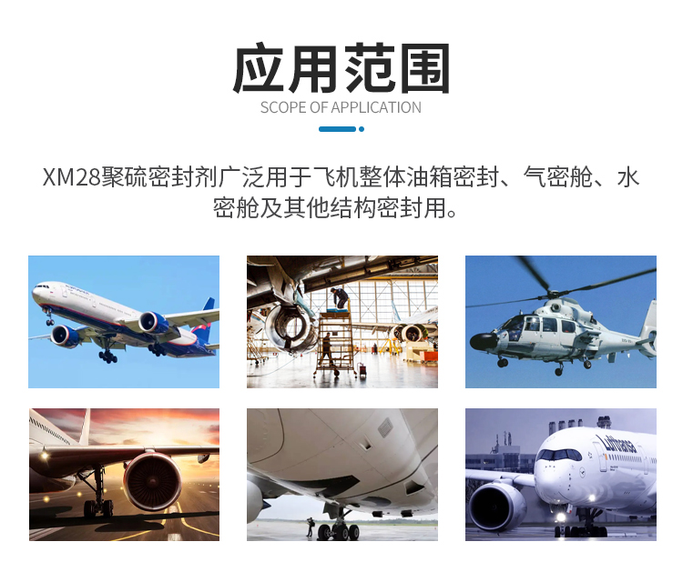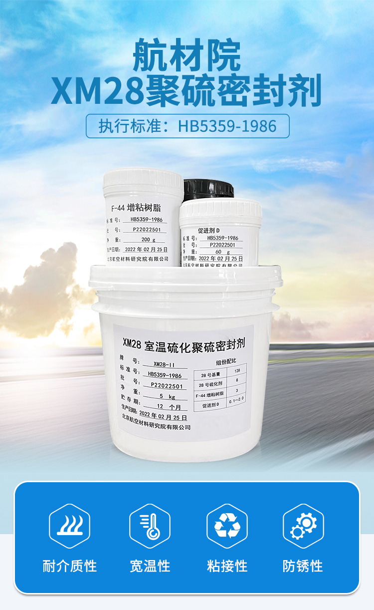 XM28聚硫密封劑可刮涂、注射,有流動性,用溶劑稀釋后可以刷涂。用于飛機整體油箱、氣密艙、水密艙及其他結(jié)構(gòu)密封,使用溫度范圍-55~120C,短期130C。