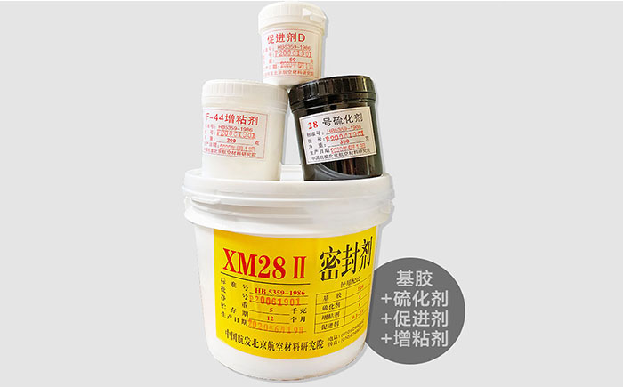 和我們常見的雙組分膠粘劑不同,XM28密封劑是以液體聚硫橡膠為基礎的四組分室溫硫化聚硫密封劑。該產(chǎn)品是由北京航空材料研究院研發(fā)生產(chǎn)的,已經(jīng)在航空飛機上投入使用,并且使用效果良好。