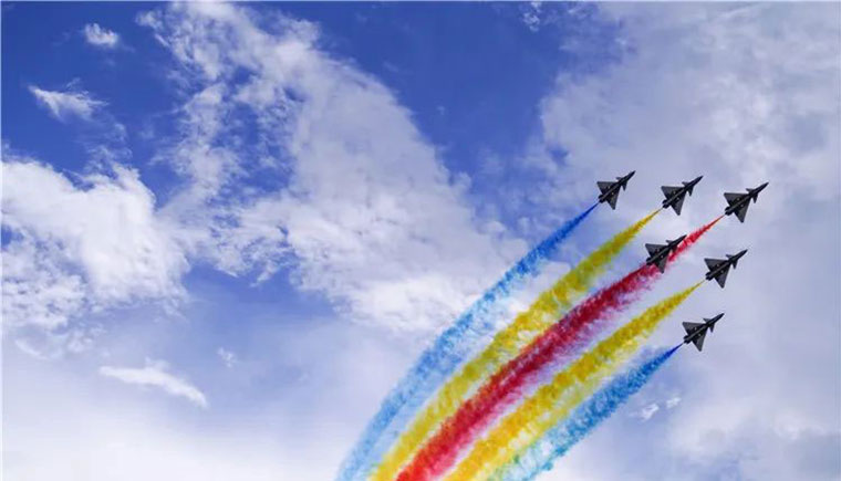 中國空軍“八一”飛行表演隊(duì)以高規(guī)格的編隊(duì)進(jìn)行飛行表演