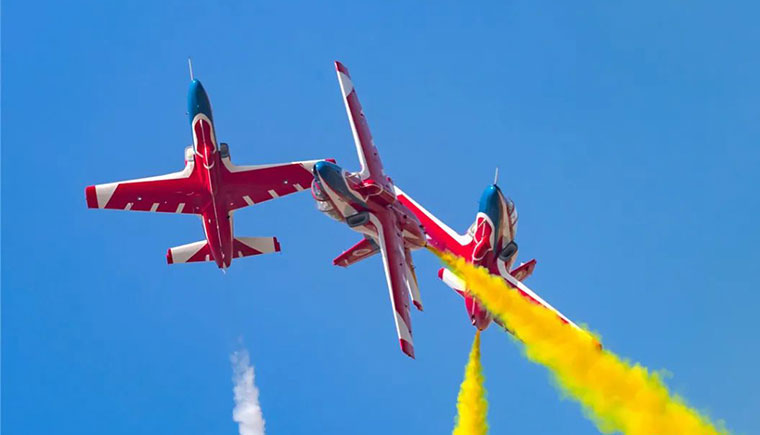 空軍航空大學(xué)“紅鷹”飛行表演隊(duì)也航展炫技藍(lán)天